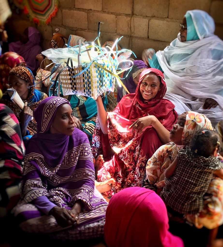 Dr Above left, Dr. Leila Bashir with literacy workers at Women’s Education Partnership offices, Khartoum. Right, basket making for income generation.