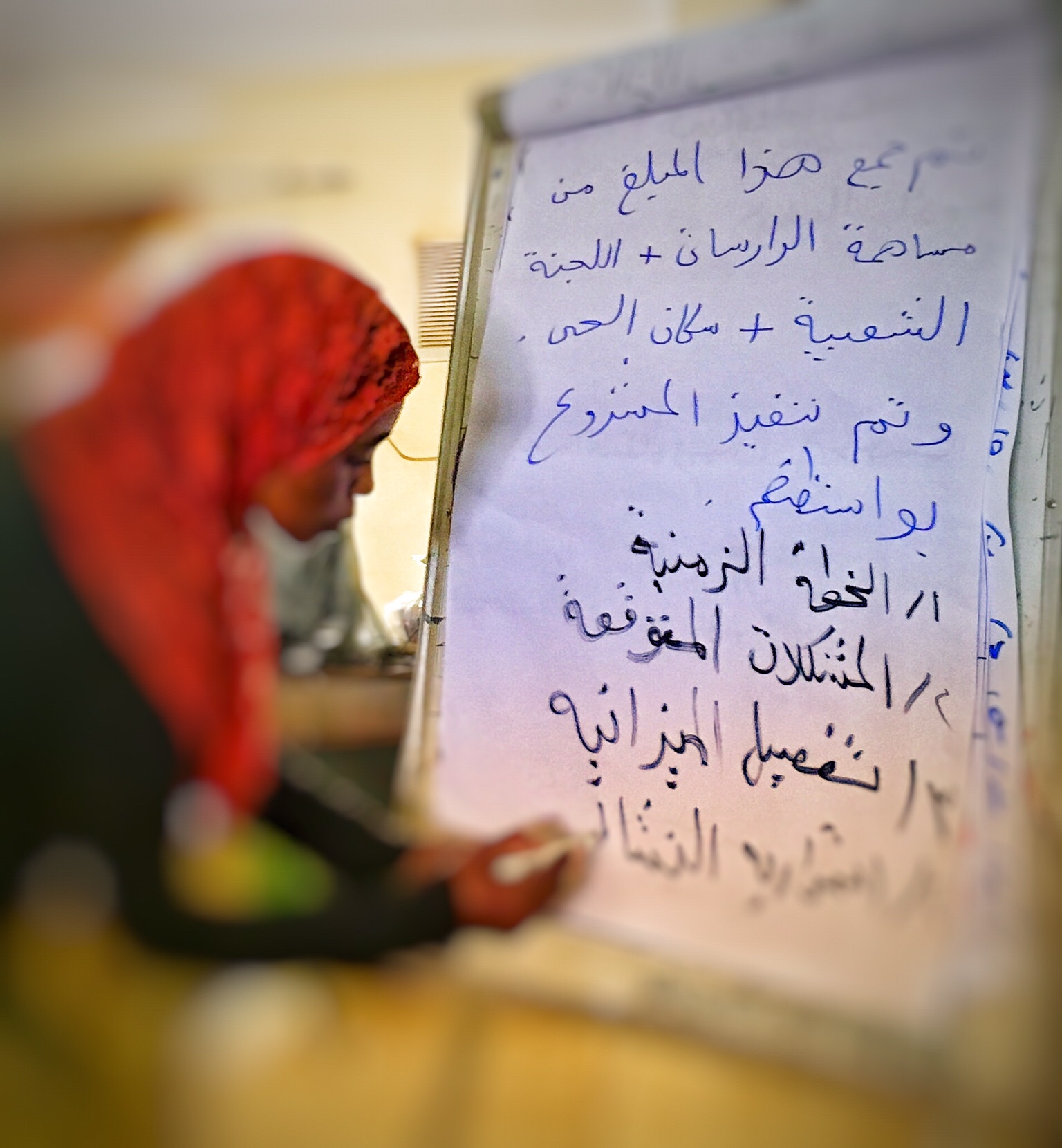 In one of the literacy sessions I attended in Jebel Awlia, an animated discussion was already in full swing when we arrived. While participants shouted out their suggestions, advice and experience, the young woman standing by the board struggled to keep up as she tried to get all their ideas down in writing. They were thrashing out the practicalities of starting a small communally-owned allotment to grow tomatoes and onions and other staples in an area where a walk to the nearest market took hours.