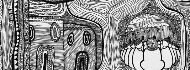 Below, detail from Reem’s untitled work. Sudan’s vast afternoon sun radiates henna-ed tracery against a sky vibrating with heat.