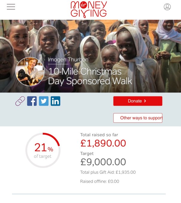When gift aid allowances are included, we raised almost 2000 pounds online through our Virgin Giving Page. A further three hundred pounds was pledged towards the walk off-line too, making the total raised close to: