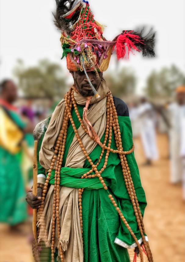 ……I was now taken into a room apart, where, seated on a divan, I was regaled with thick Sudanese coffee – heavily fragrant for this occasion with cinnamon – and entertained in conversation with by “third in command” of the Tariga, a veritable greybeard of kindly countenance. He wore a circular white turban round a central skullcap…..I asked the sheikh what Sufi-ism stood for. HIs face lighted up in the rays of the lantern, and his eyes glistened with almost holy fire.