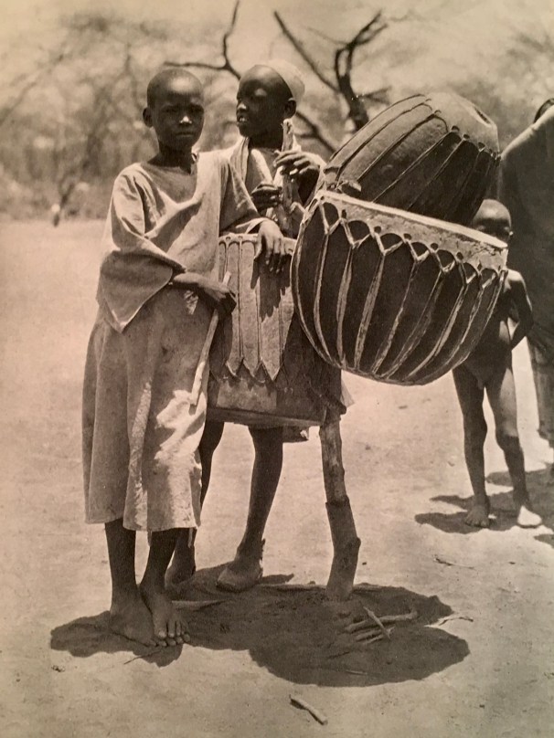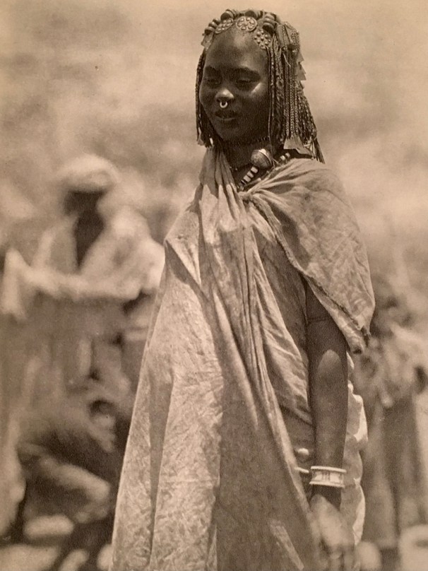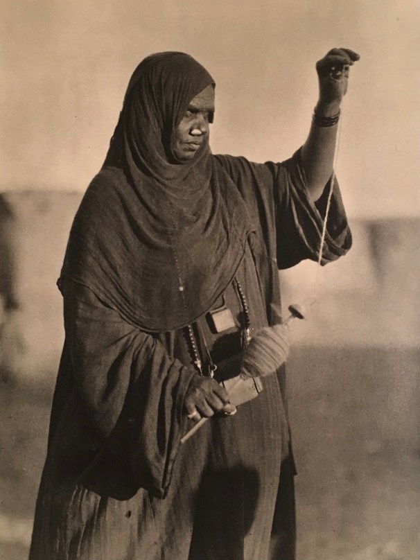 Above, plate from Der Dunkle Erdteil, Atlantis Verlag Berlin, 1930. Below, from same source, “Bisharin woman spinning”, followed by “Awlad Hamid Drums”, and “Awlad Hamid, silver and amber ornaments”.
