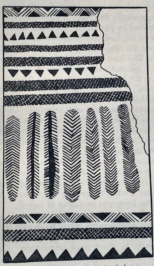 Above, from same source, sketch of Tutti Island, Khartoum. Below, Nuba Mountains house decoration, from Pagan Tribes of Nilotic Sudan, Seligman, 1932.