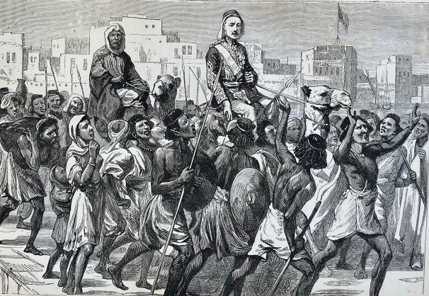 Below, coloured colonial etching of the town of Dongola, Northern Province. The Mahdi was in fact born on Labab Island, near Dongola in 1844. (Picture source unknown).