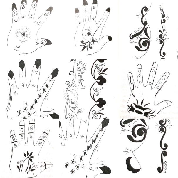 Below, “Traditional henna designs”, as recorded in the early 1980s in Sisters under the Sun.
