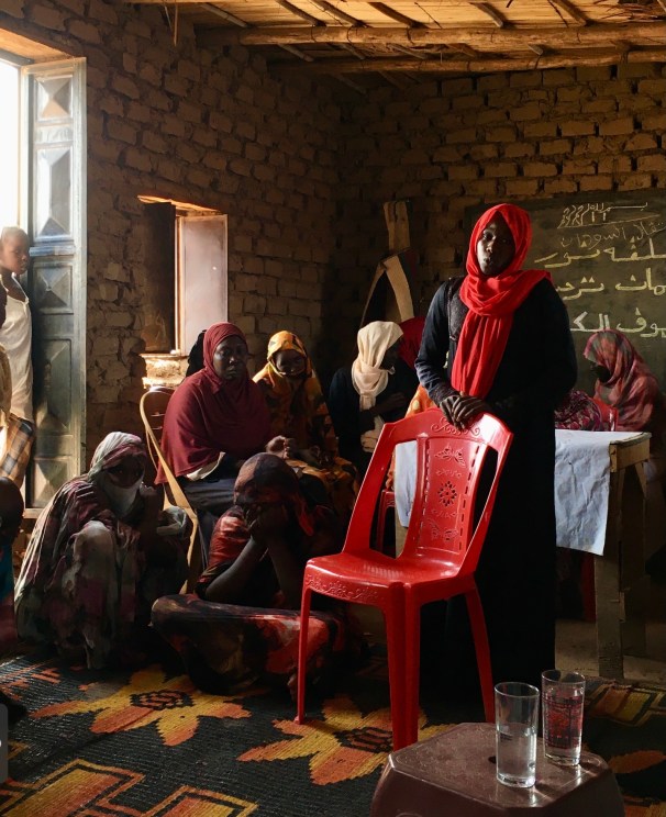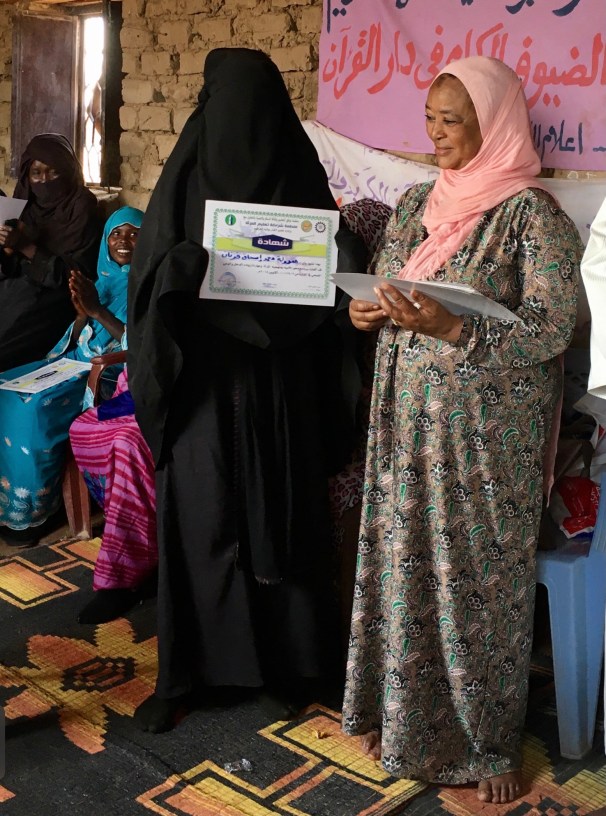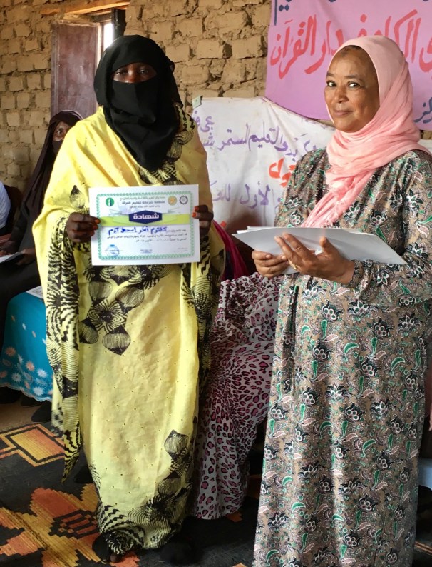 Below, empowering our participants to gain confidence in their leadership abilities is key to initiating community development projects. Below a graduate from Jebel Awlia literacy circle giving a talk. She had never spoken in public before attending her literacy program.