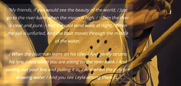 Below, verses from The River, A Commentary on Two Nubian Poems, Herman Bell, Second International Sudan Studies Conference Papers, Volume 2, 1991.