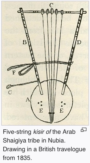 Title photo and above, a 19th century Sudanese lyre or tanbūra / tanbūr or rababa, known in Northern Sudan as kissar, from the Nubian word ko:s (bowl), also used to refer to the cavity of the skull. The lyre belongs to The British Museum’s Sudan Collection. The photos of this lyre are copyright,Trustees British Museum, and are reproduced here under CC licence for non-commercial use.