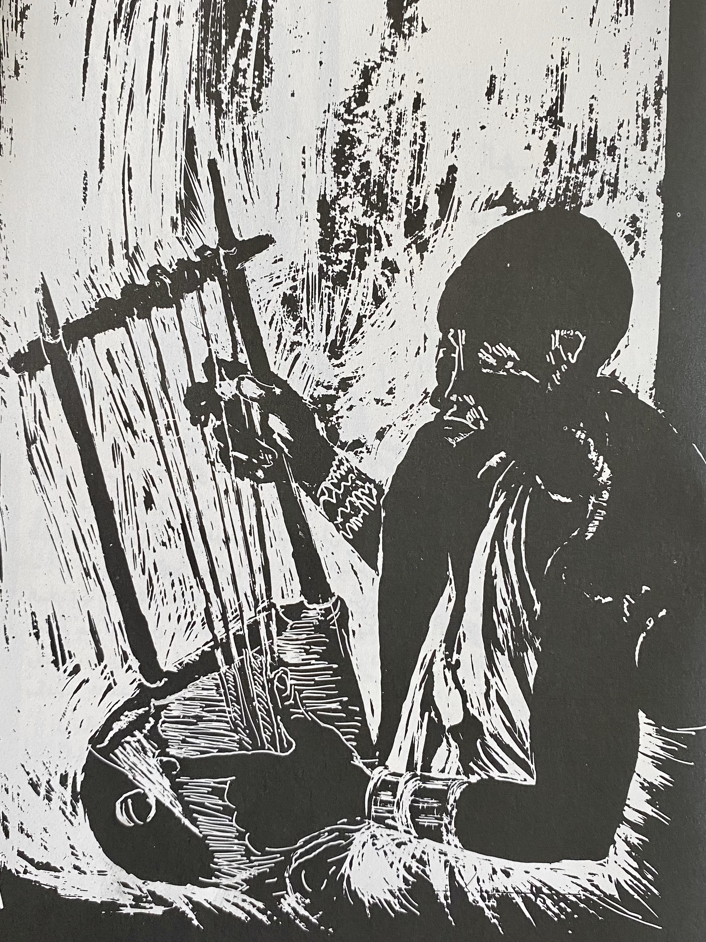 Below, sketches of some of the numerous regional forms of Sudanese lyre, such as the Ingassara jangar (bottom right), the Abangarang of the Berta of the Blue Nile (bottom left) and the Shilluk thom from South Sudan. (centre).