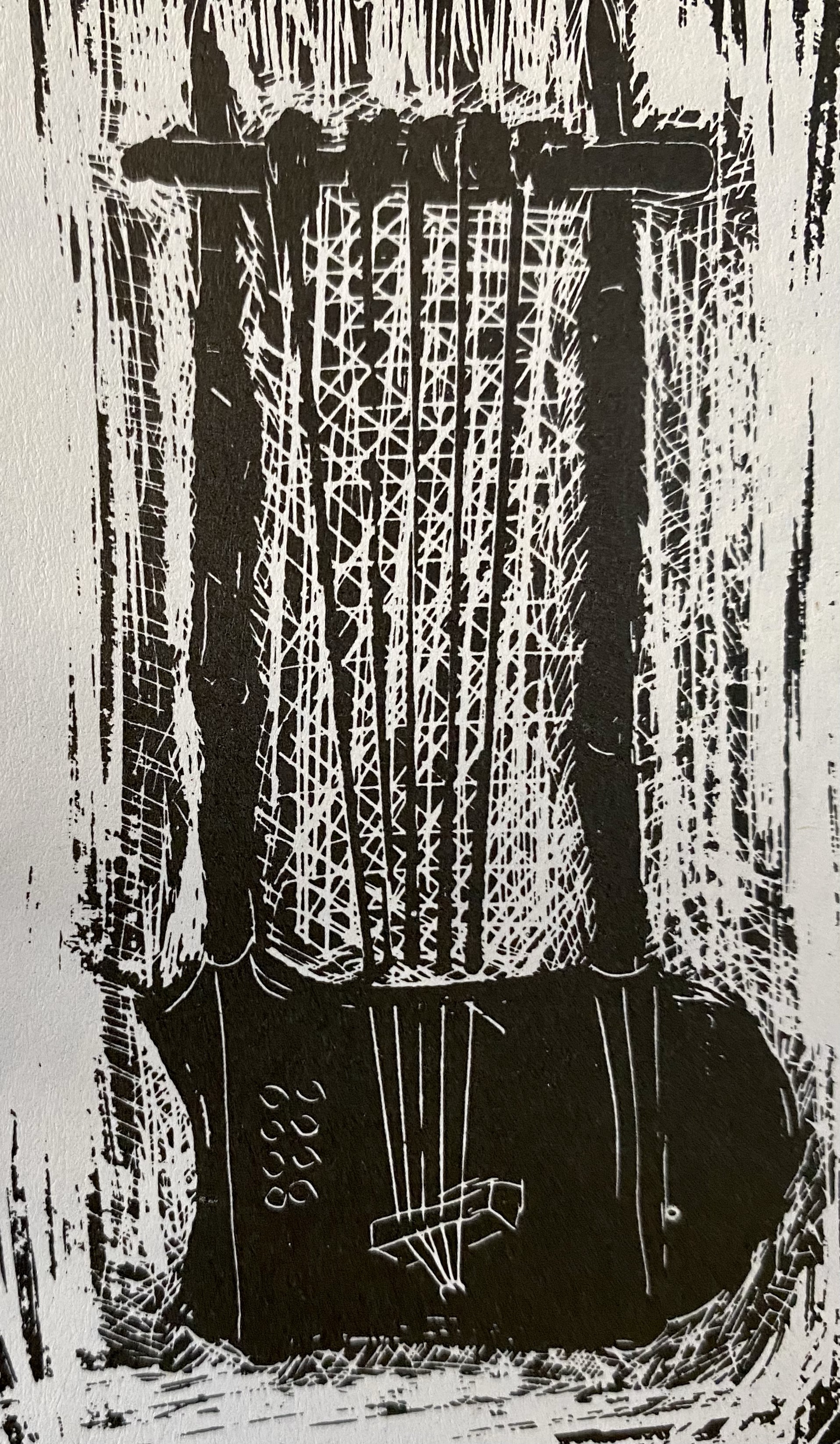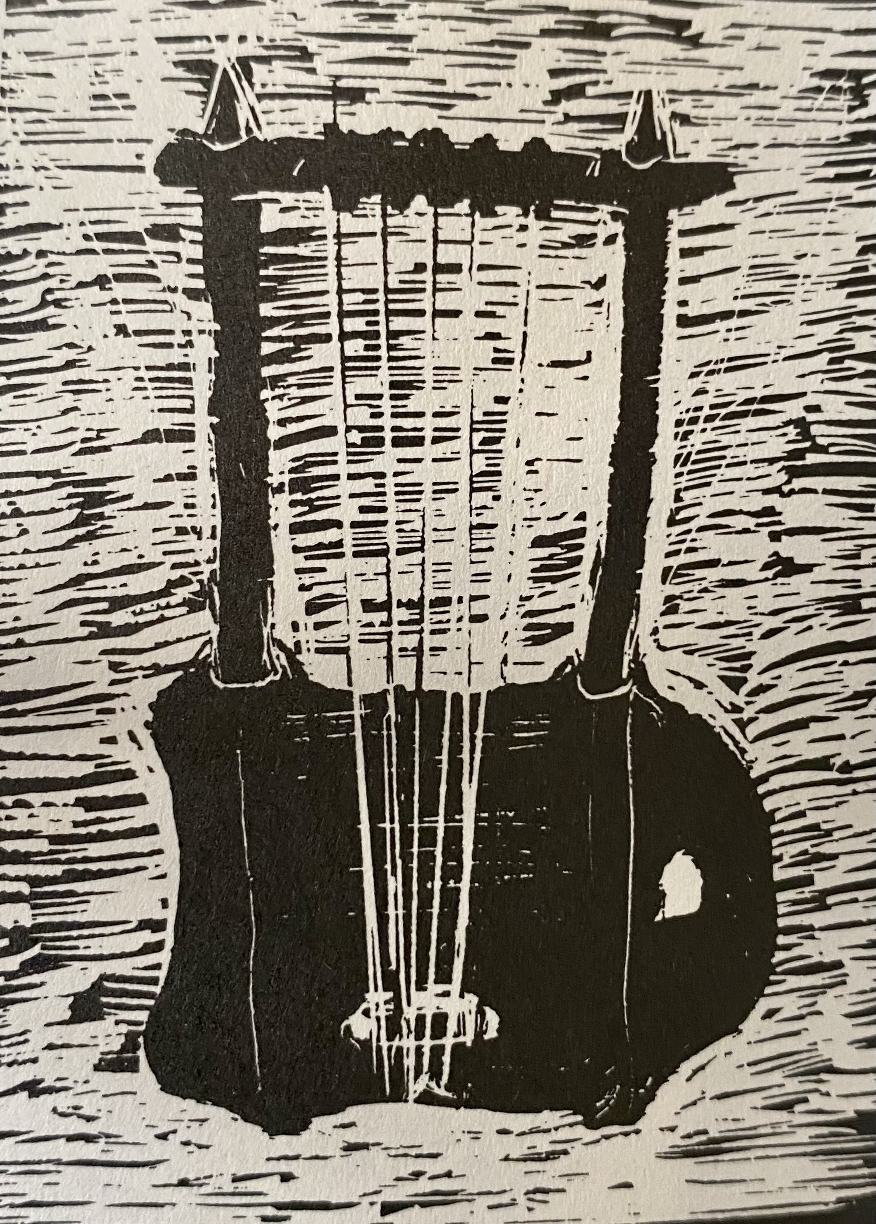 Below, a tribute to the lyre by Berit Bredahl Nielsen, Saatchi Art, 2018