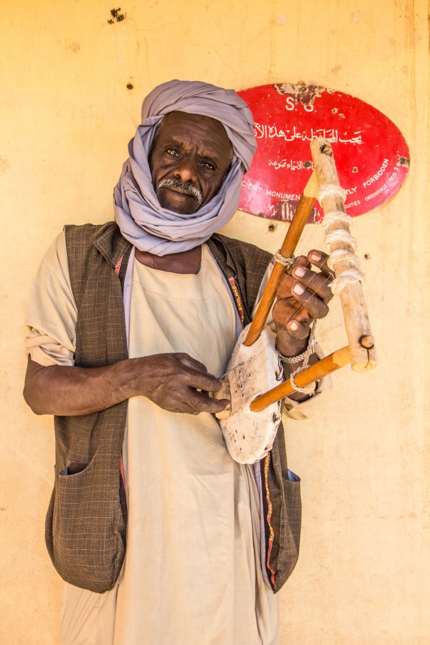 “The lyric songs of northern Sudan were originally played on the tambour, or lyre, using pentatonic scales, and are quite distinct from the Arabian maqam structures. When the far more sophisticated oud or lute was introduced from across the Red Sea, Sudanese players developed a style of plucking and striking the strings of the oud from the technique they had used on the lyre. Some of the more basic lyre-players scrub jerkily across the splayed strings, a sort of acoustic grunge to western ears, while others extract a plaintive quality.