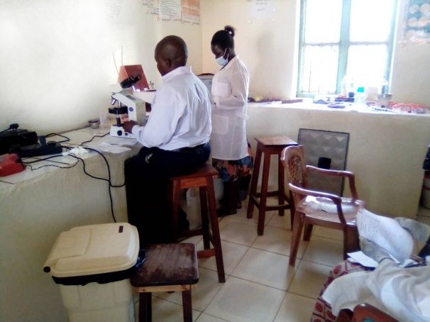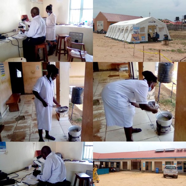 Above, undertaking medical analyses at Kimu health centre, Juba.