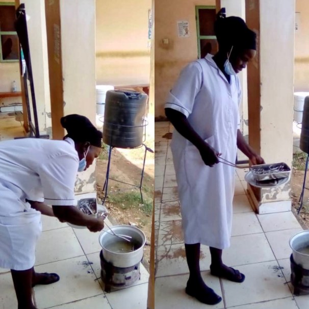 Above left, midwives sterilizing medical equipment.