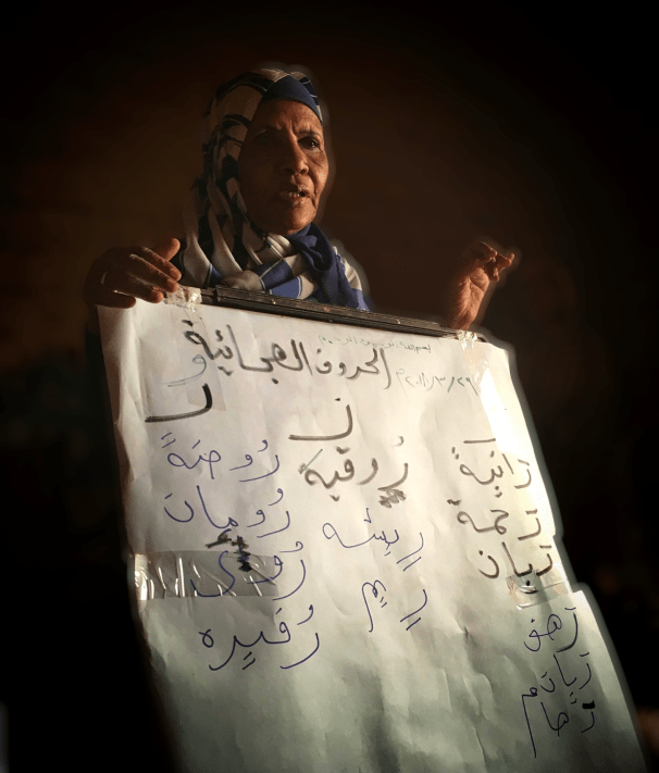Above, Dr.Leila Bashir, international expert in REFLECT literacy and our collaborator in Women’s Education Partnership, pictured while visiting El-Fatih literacy circle before the pandemic. The pandemic has made us value even more the power and connectedness of in-person teaching and the chance to interact with and support learners in physical communities.