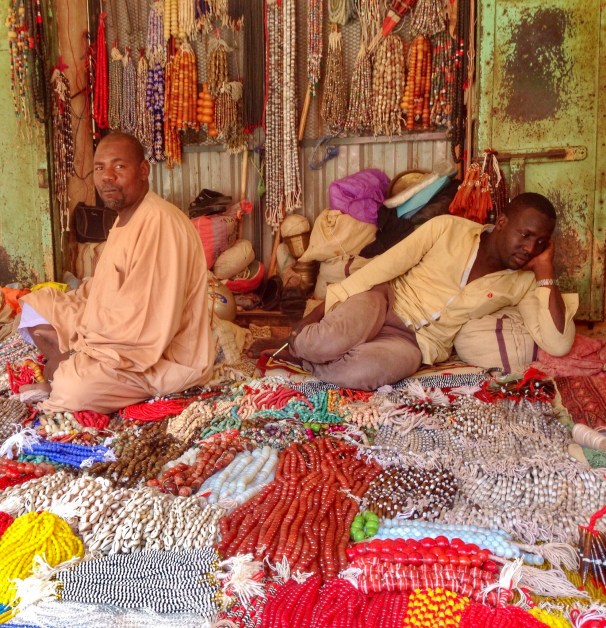Once familiar with the hagoo I very much wanted to buy one, but I was not successful in the women’s souk. They are not easy to find as every household has one and close relations borrow it. I could not have expected a young Sudanese woman friend to come to the market to help me look for one. I might have found a grandmother who would have been willing, but Mahmoud volunteered to help me. We found our way to the small women’s section of the souk, amid broad jokes and grins from the merchants, most of whom knew Mahmoud and wanted to know what we were buying. When they learnt the answers their jokes became more ribald, but we did receive helpful suggestions as to which woman would be likely to have a hagoo for sale. We were lucky, there was just one entwined with a good many other necklaces suitable for brides who could not afford the usual gold. They were in a deep, carved black ebony bowl hewn from the solid trunk of a tree which many years ago would have been used as one of the central food bowls in the men’s diwan.”