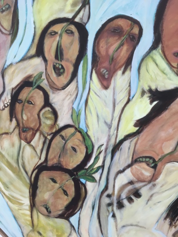 Below, the smoke-distorted liquid forms of Zār participants swathed in rings of incense burning in the mubkhar at the heart of the painting, The Seat, Zar Ceremony, 1916 by Kamal Ishaq.