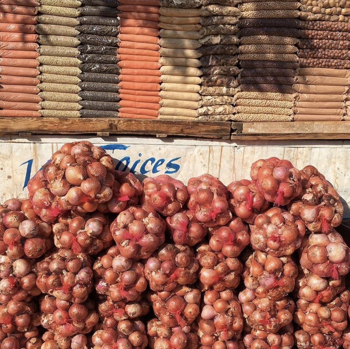 In daily ritual / herdsmen gather for black tea / in chequered shade / their scrawny sheep / destined to be killed / for celebratory events. / By the roadside / sacks of onions and charcoal / lean unsteadily, overfull / flatbread pyramids of cucumber / tomatoes ready to be sold. /