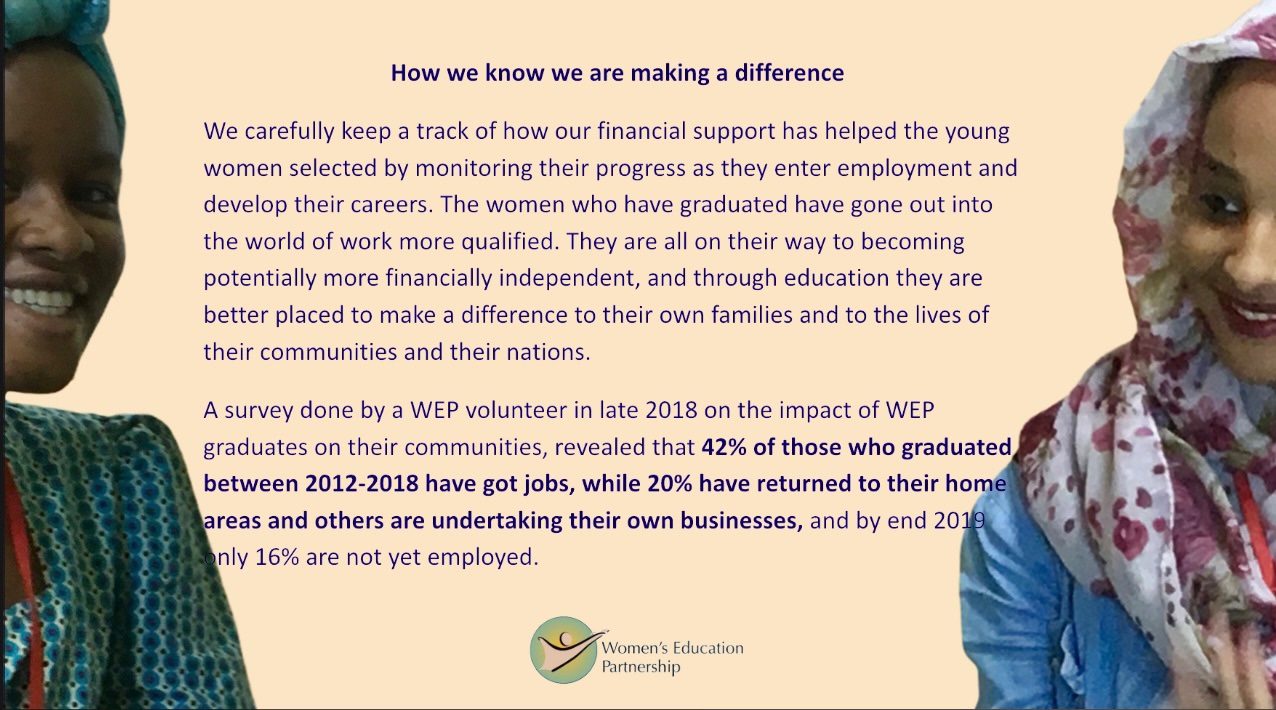 This week’s post is the first of three blogposts dedicated to the life-changing work of Women’s Education Partnership. Today we outline our University Scholarship Programme, which has enabled 375 young women from disadvantaged backgrounds to graduate from university and go on to serve their communities.