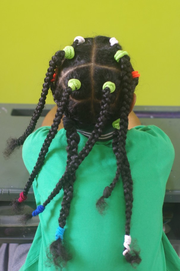 Below, a young Sudanese girl today with her braids, (photograph, Wikipedia)