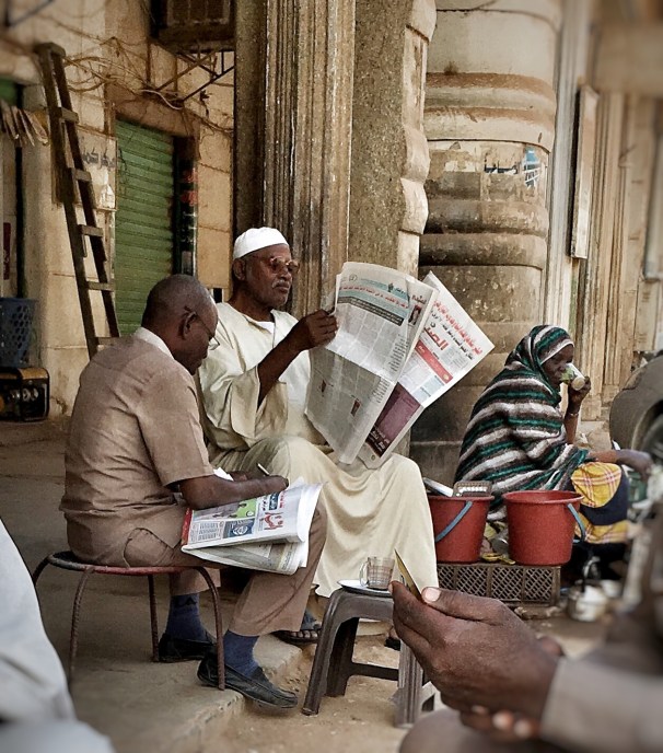 Photos above; inside the hulk of the Melik gunboat, morning coffee and newspapers off Zubier Pasha Street, Khartoum, mint and lemons in Omdurman market (Imogen Thurbon); roadside scene, Dreamtime.com, used under contract.