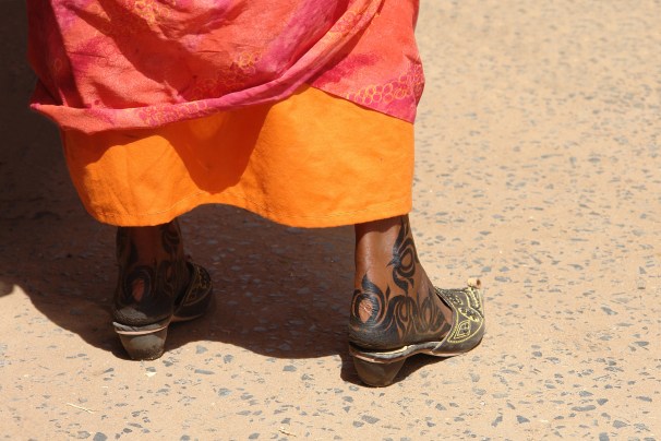 Above, delicately hennaed feet, photo Dreamstime.com used under contract.
