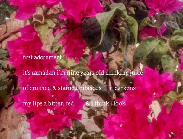 For the US-based Sudanese poet and writer, Safia Elhillo, the “crushed and stained” hibiscus juice she drinks as a nine-year-old at Ramadan is her child self’s “first adornment” as she strives to negotiate her place among the community of women that surrounds, sustains and unnerves her.