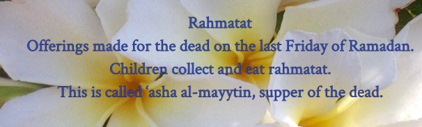 Above, Ramadan collage. Photo credits; top left, still from Al-Ain TV; communities breaking the fast together and offering food to all who pass by. Bottom left, A Sudanese woman prepares kisra, wafer-thin bread, Wikipedia,(cc), Mohamed Elfatih Hamadien. Kisra is often served with Ramadan stews. More on kisra and Sudanese stews in coming posts. Watch an annotated Sudanese Arabic interview with a Kisra Lady in Sitt al-Kisra.