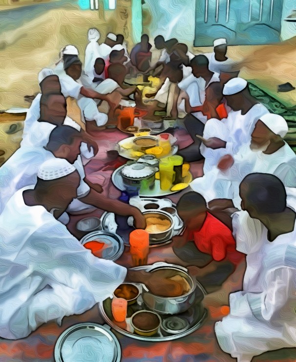 There is a story that once during the fast of Ramadan, guests came to a village. As sunset approached, people prepared to break the fast together in front of their houses as is the custom. The sheikh quickly went to the nearest house with the guests. That house was simple and its inhabitants were poor. From that house, a young boy brought a jug with many cups and only one dish on a tray. He distributed cups of water with great passion to the guests and made them feel welcome. The person telling the story said that he had been ill for a long time with a stomach ailment and had received medication in Khartoum and had even been to Jordan for treatment. God had certainly wanted him to be at that iftar feast. When the boy brought the drink it was hilo murr, a fermented grain drink without sugar, and the kisra had only water, onions, salt and oil to eat with it and no sauce. The man said, ” As we were eating, I thought about the poor circumstances of that family and out of compassion for them, decided not to eat dishes brought to the iftar by other villagers.” Later he said, “I only ate that dish and not a single other thing that day. Praise be to God, from that moment on my stomach is well and it never felt poorly again after that.” Indeed, giving from the depth of one’s heart is a blessing with its own wonders.”
