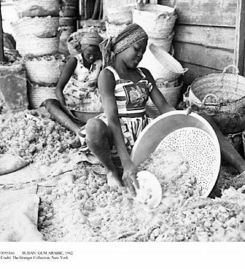 Above, a colonial postcard of women sorting and cleaning gum arabic in Omdurman. More next week on women’s roles in gum collecting and processing.