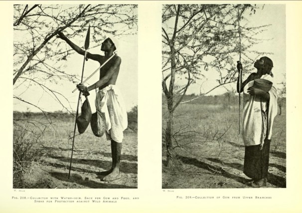 Collecting gum while carrying water skin and spear to protect against wild animals, Wellcome CC, as above; an arduous, prickly and sometimes even dangerous task.