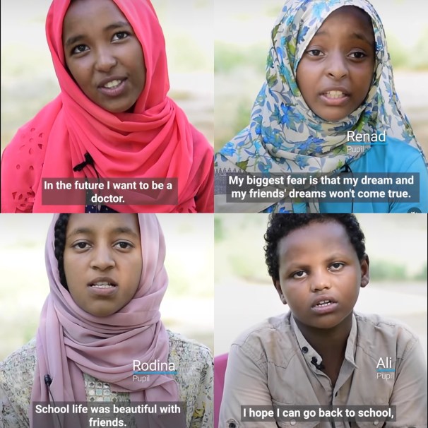 Below, Sudanese youngsters yearn to return to school: