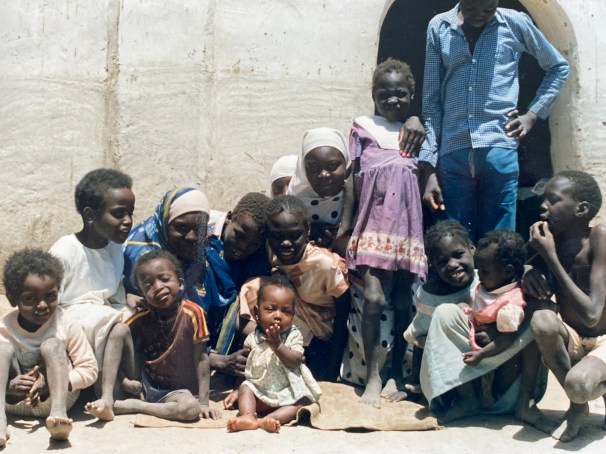 Below, village children near Dongola in early 1980s waiting in the late afternoon sun while their mothers pounded sorghum and stooped over griddles to prepare burnt russet-coloured hilu murr and its creamy white sister, “abre”, Ramadan cousins of kisra.