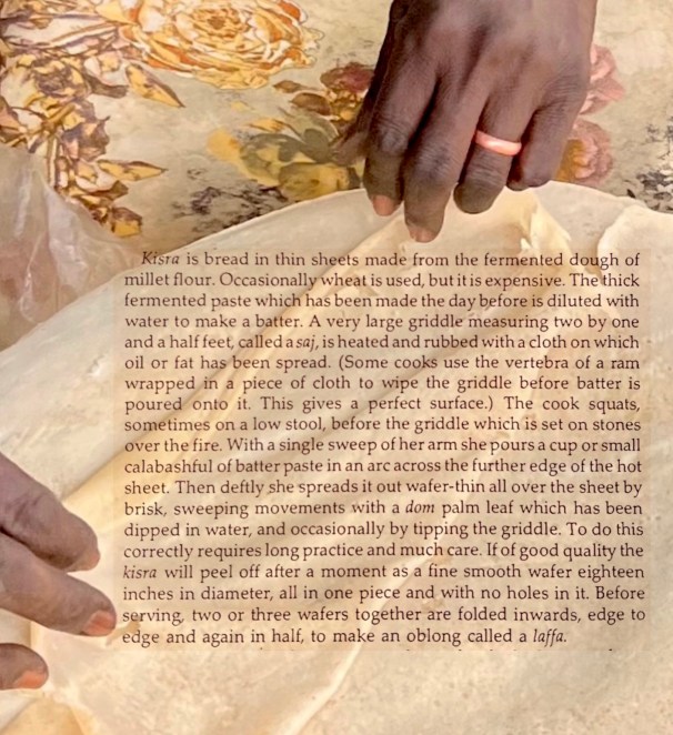 As part of my continuing tribute to the late Dr Hamid Dirar, biochemist and world expert in Sudanese fermented foods, this week’s post is a celebration of the tangy, lacy, wafer-thin Sudanese pancake bread, known as kisra.