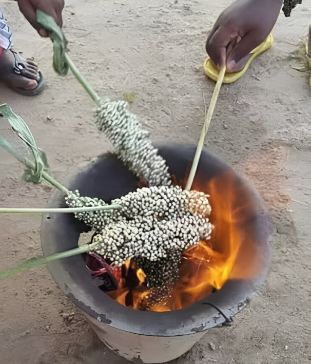 Photo above, grilling early harvested sorghum, Sudanow. Sorghum, Sudan’s Staple Food of All times