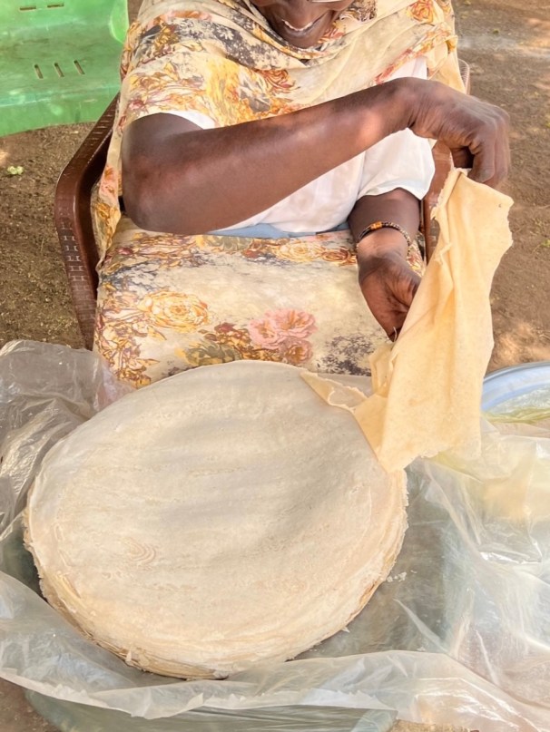 Above, a kisra seller folding her delicate sheets of sorghum bread, central Khartoum, 2019. During my month-long stay in the capital last summer, I would look forward to passing by her roadside stall in the swiftly gathering heat of early morning. We would chat and put the world to rights as she deftly parceled up neat pockets of kisra and wrapped them in plastic. This lovely lady is one of millions of Sudanese women who daily sustain and improve “food security at national, community and household levels“ through their knowledge of the preservation and fermentation of basic foods.