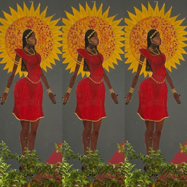 Above, and title image, detail of the mural that adorns the gardens of House of Heritage, Khartoum; a homage to the jertig wedding rituals and dances of northern Sudan.
