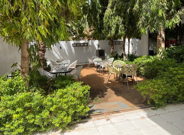 The House of Heritage, meeting place for intellectual, artistic and cultural exchange, has been severely damaged in the war, with its facade and gardens now shell-pocked and strewn with debris.
