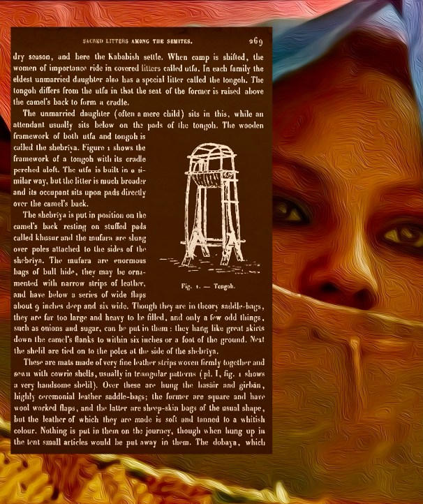 This week’s article draws on contemporary Arabic media, as well as western accounts of the Sudanese hawdaj; a source of fascination to non-nomadic Sudanese and colonialists alike. I reproduce below extracts from Seligman’s evocative and meticulously detailed Sacred Litters Among the Semites with Reference to the Ufta of the Kababish, Sudan Notes and Records, Volume 1, 1918. It is important to note that corrections to Seligman’s text and its Arabic terms were offered by other colonial observers and can be found in SNR.