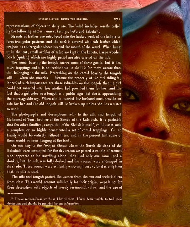 Below, an excerpt from Sacred Litters among the Semites with Reference to the Utfa of the Kababish. I reproduce only sections of the text relating to the Sudanese ‘uTfa but the article includes fascinating details of ‘uTfas throughout the Arab world. This article is made available by Sudan Open Archive, an invaluable public resource.