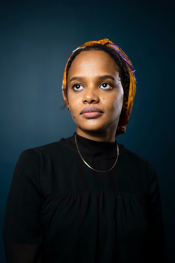 Above, right, portrait of Sudanese visual artist, Amna Elhassan by Kheir, 2020, CC, Wikipedia..