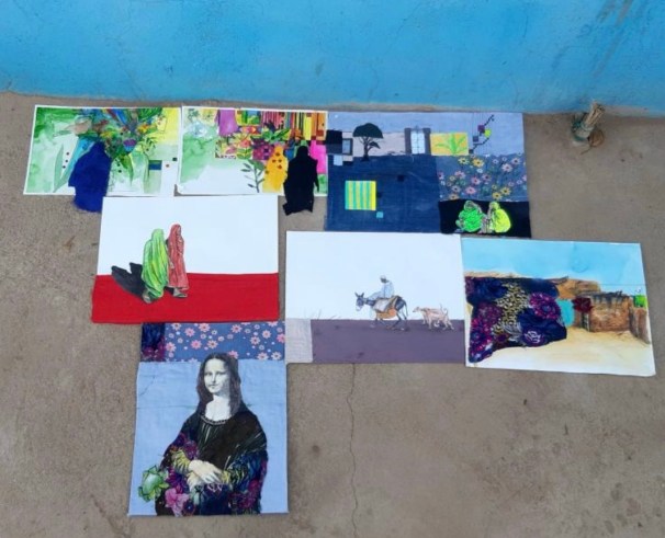Mohammed: I’m currently continuing my university studies online and I’m also working on my project in recycling and utilizing fabric, along with other works (shown right). In a perfect world, I’d be doing two things: dedicating a large studio where I can express the love and emotions I hold within me for Sudan, with all its historic heritage, through my painting, and I’d be developing my own style to express issues, such as through the medium of expressive painting.