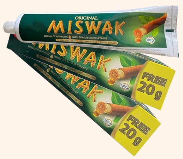 The toothbrush known variously in Arabic as miswak, miswaak, meswak, sewak, siwaki, is believed to be “one of the oldest known oral hygiene tools”, and is still used by millions across Africa, The Middle East and Asia. It is cheap, readily available, requires no toothpaste and, if used correctly, modern research has indicated, rivals the conventional plastic and nylon toothbrush when it comes to combatting plaque, caries, gum and periodontal disease. So much so that The World Health Organization recommended the use of the miswak in 1986 and again in 2000. (A Review of the Therapeutic Effects of Using Miswak(Salvadora Persica) on Oral Health). Today, the miswak can be ordered online, vacuum packed, in clove, orange and other exotic flavours, and purchased with its own, smart, cigar-cutter style metal bristle trimmer. Glossy websites advertise western style toothbrushes made of arak bristle and wood and boosting the latest Japanese technology and arak miswak toothpaste, shown right, is also a big seller.