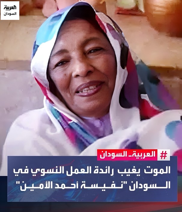Left, news outlet Al-Arabiya Sudan announced the passing of Dr Nafisa Ahmad Al-Amin.
