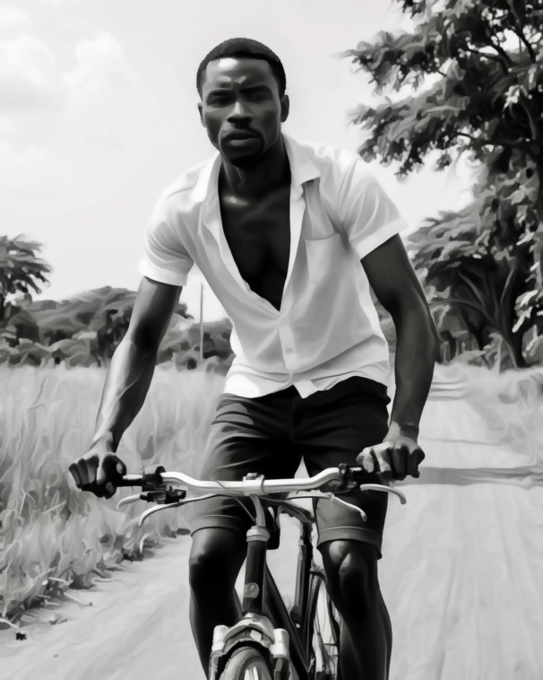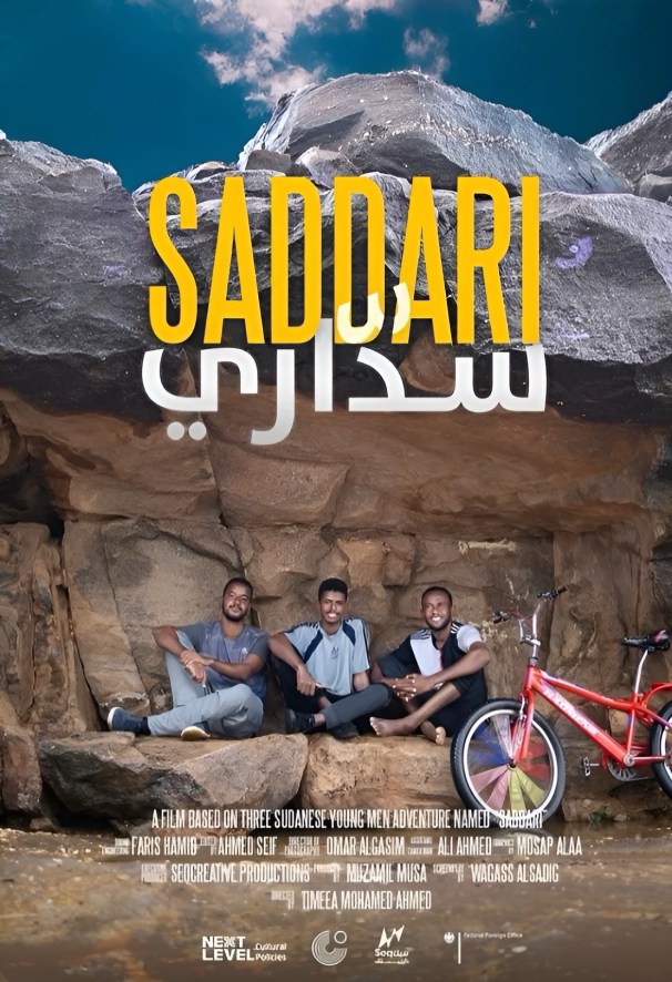 Can you get somewhere on foot (kaddārii)? / Or ride a bike standing up, chest to the wind, sometimes with the shirt open; saddārii, (from the Sudanese colloquial for chest, see too the film trailer for Saddari, shown right. Cycling dressed like this is sometimes considered risqué) / Or mount a donkey on the run? / Or kick a football with barefoot toes (and nails); Daffārii? / Hey, little girl, sweep the courtyard; al-Hoosh / and run a comb through your unruly hair (mankuush; dishevelled, tousled) / and always leave the floors freshly sprinkled (with cooling water and to settle the dust) / and spread the verandah with rush mats; biruush, (for receiving guests) / all the while Hamaad sits, Sangar, lounging back in his chair; (happily resting) after milking the cow / shooing the dog away with a “jarr”, “jarr!”