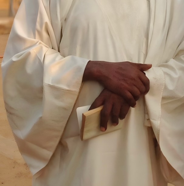 Do you know our word kūlīga for a sheaf of millet and at-tirbāl for a farmhand, (literally the sickle holder in Nubian) who takes up his hoe, Tūriyya, and his capital, rās al-māl, (the source of his prosperity and livelihood, his land and the work he does) / and tightens the waist cords (at-tikka) of his loose trousers, sirwaal (shown above left) / and to the land (proudly) says (now) the (real) men, rujaal, have come / a sheep slaughtered to honour the guest, aD-Dayf / The open (or kind; the opposite of frowning) face of unfeigned, mā ziyif, absolute sincerity / qualities that defy description, waSSīf /