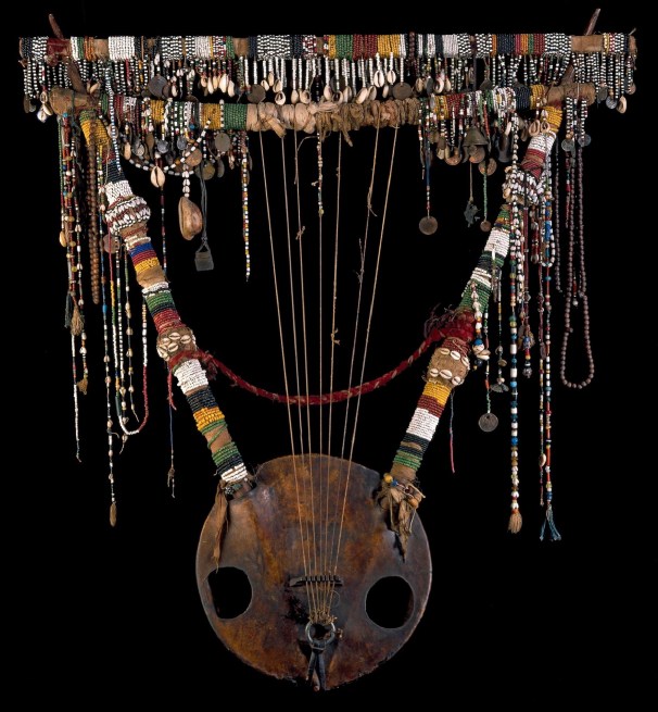 Beading is also used to adorn musical instruments such as the exquisite tambour, conserved at The British Museum, below. Learn more in The Sudanese Tambour.