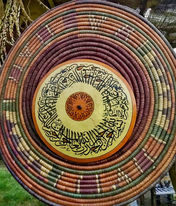 Above, Below, a beautiful example of a Darfuri tabag embellished with finely executed Quranic calligraphy, seen at the Burri Botanical Gardens Flower Festival, 2019, exemplifying the spiritual, artistic and cultural resonances of the tabag