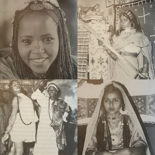 Above, top left, a Hadendowa bride, Kassala Province, top right, a Beja bride; bottom left, typical Sudanese weddng dance and bottom right, Nubian bride in tradtional wedding costume. Photographs and captions from Sisters under the Sun, The story of Sudanese Women, Marjorie Hall and Bakhita Amin Ismail.