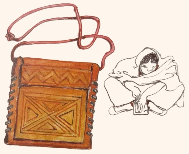 Forty years ago, sitting huddled on low stools round the charcoal braziers of the tea and coffee sellers of Khartoum, it was a common sight to see the corners of well worn mahfazas emerging under the long skirts and robes of the older women gathered there. Affectionately associated with Sudanese grandmothers everywhere, the mahfaza evokes childhood memories of grandma retrieving her purse from under her clothes to take out a coin as a precious reward or treat for her grandchildren. It could, of course, also recall the smart of a mahfaza strap, still warm from grandma’s body, on a child’s skin – a stinging reprimand for some long forgotten misdemeanor. Now rarely worn, the mahfaza still exercises a nostalgic pull on today’s generation, where its cultural resonances have been re-interpreted by influencers, activists and artists. Its return has even been advocated as a solution to a recent surge in bag snatching, known humorously as “pulling a long 9”.