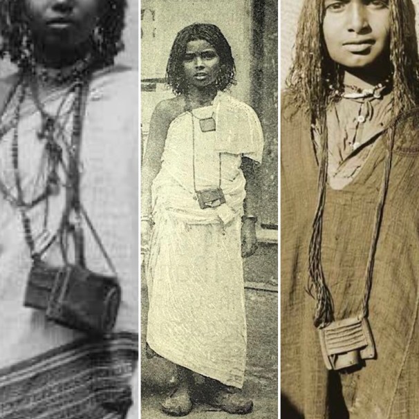 Below, an illustration by Griselda El Tayib of a mahfaza with red gittan cord, from The Regional Folk Costumes of The Sudan.